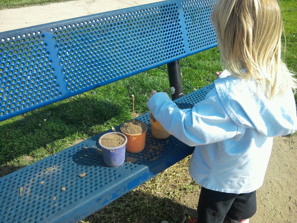 Today, however, she went and found 3 rocks and planted her "seeds" deep